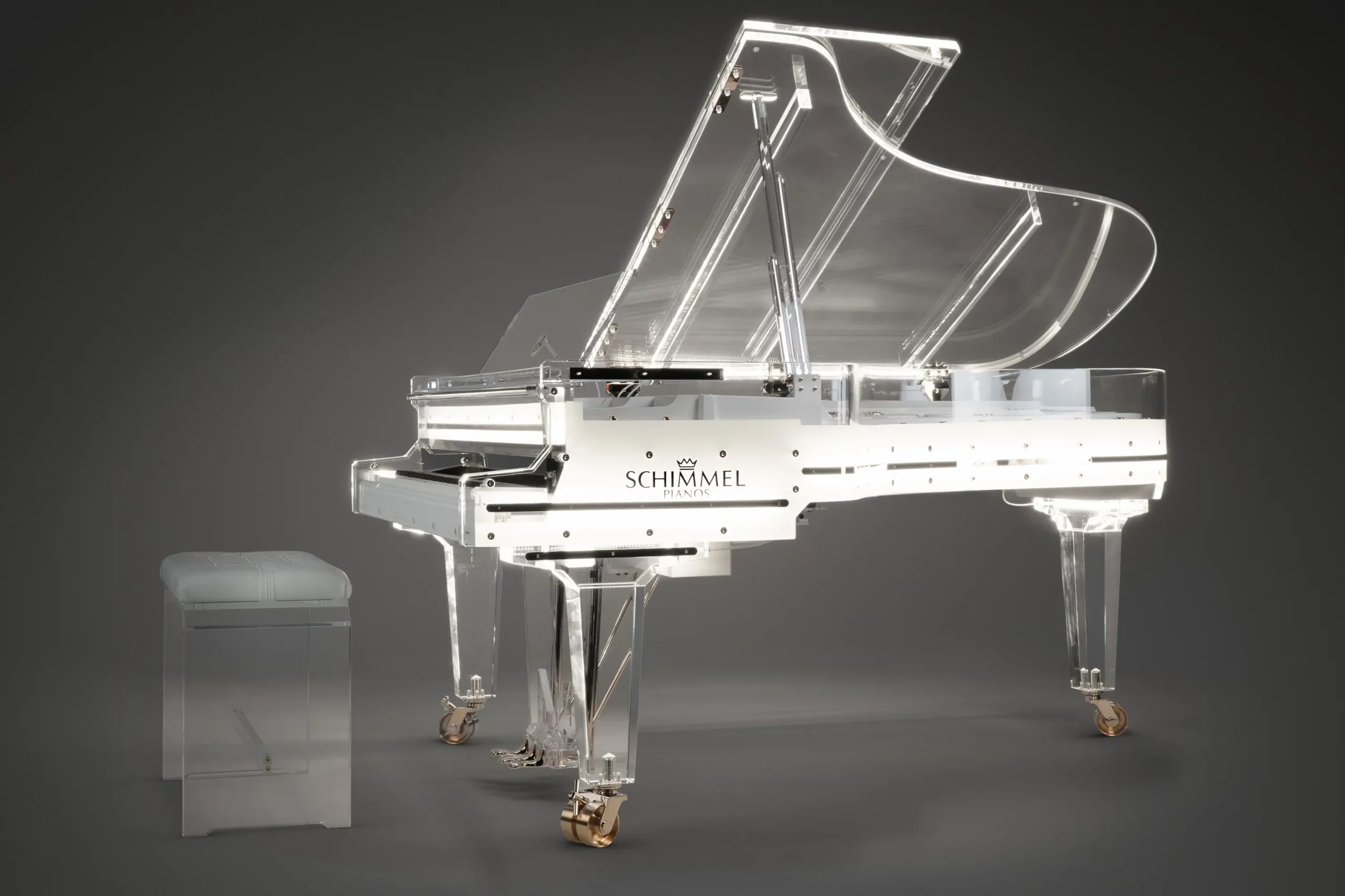 Schimmel水晶鋼琴宏亮聲音加上獨特透明琴身設計,不僅是藝術與科技之完美結合,讓表演者隨心所欲地彈奏心愛的樂曲。琴聲獨特的燈光設計,更為欣賞者帶來精彩絕倫的視覺享受。