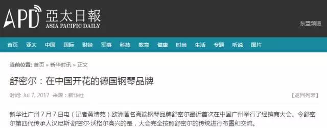 新華社7月7日電(記者黃浩苑)歐洲著名高端鋼琴品牌SCHIMMEL最近首次在中國廣州舉行了經銷商大會。令SCHIMMEL第四代傳承人漢尼斯·舒密爾,沃格爾高興的是,大會完全按照SCHIMMEL的傳統進行布置和交流。